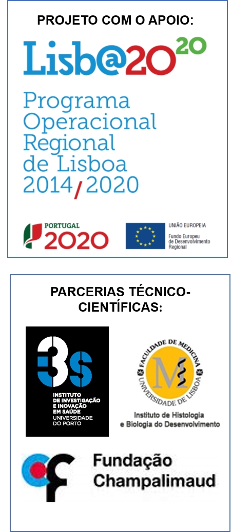 O presente projecto tem vindo a ser desenvolvido em parceria com diversas entidades do Sistema Nacional de Investigação e Inovação, nomeadamente o Instituto de Investigação e Inovação da Universidade do Porto, Instituto de Histologia e Biologia do Desenvolvimento da Faculdade de Medicina da Unbiversidade de Lisboa e a Fundação Champalimaud.
